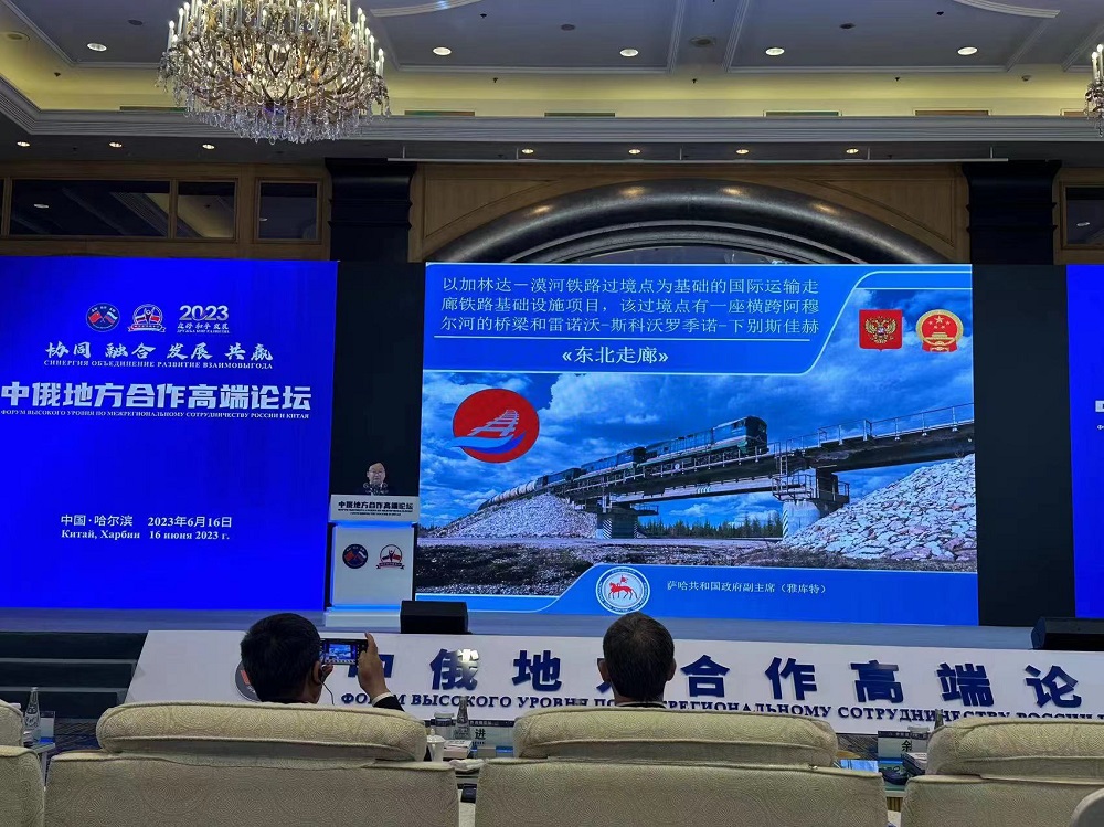 萨哈(雅库特)共和国政府副主席斯捷潘诺夫、阿穆尔州吸引投资署副署长赫姆拉·谢尔盖及雅库特铁路股份公司执行董事顾问阿布拉莫夫·阿列克谢先后在不同的专场活动中就漠河-加林达国际运输走廊项目进行推介,重点阐述了项目的广阔发展前景及实施计划。